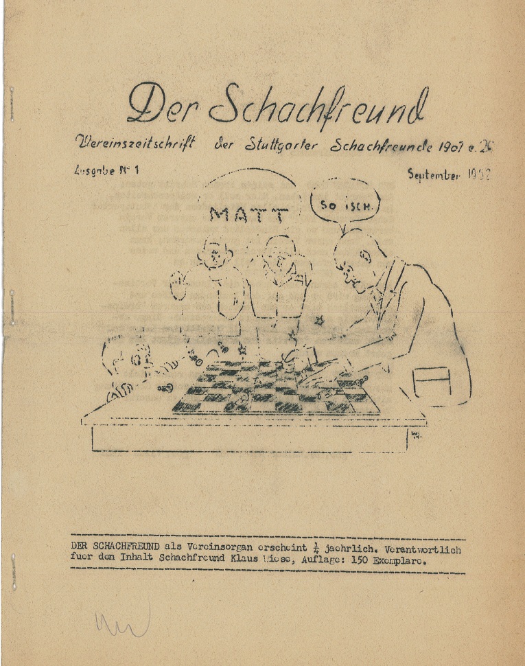 Der allererste „Schachfreund” vom September 1952! Verantwortlich für den Inhalt: Klaus Wiese!